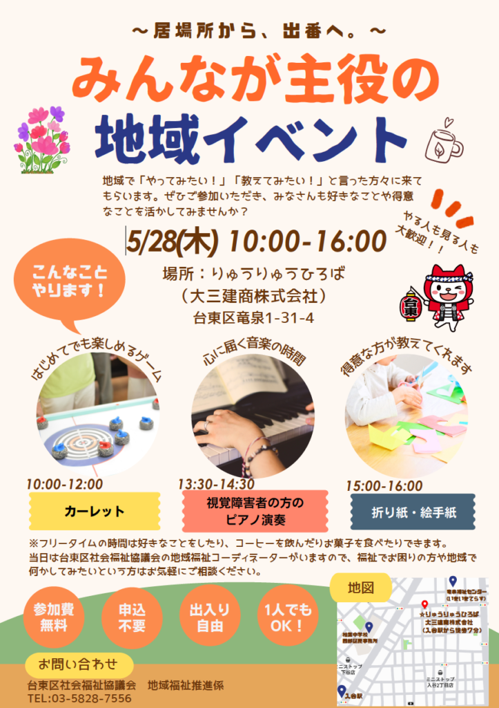 台東区社会福祉協議会 地域福祉推進係 主催による交流イベントが開催されます。